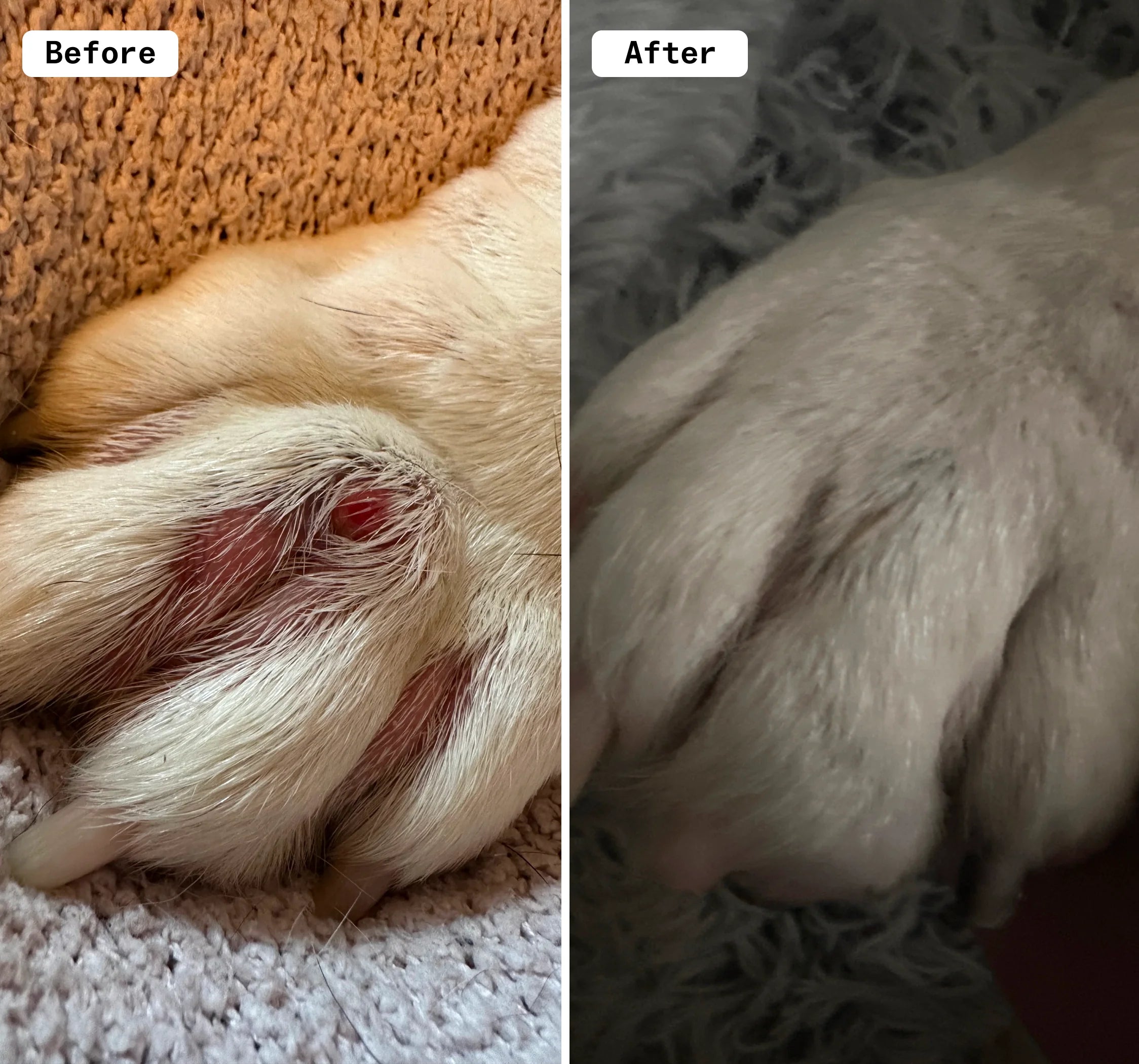 Skin stays nourished and resilient—fewer yeast flare-ups or reactions. Dogs experience healthier skin, paws, ears, and an overall improved quality of life.